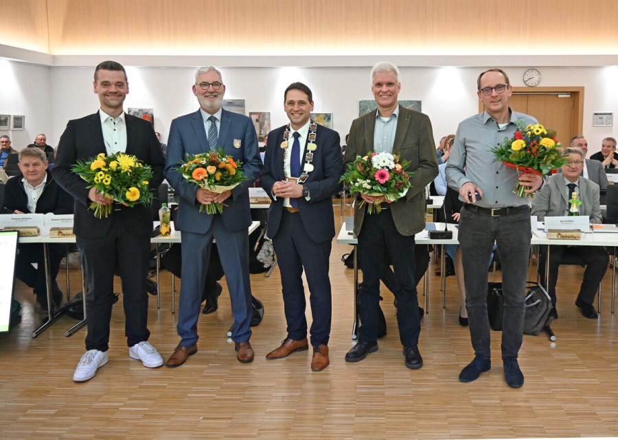 Nach Wahl und Ernnenung zum Merler Ortsvorsteher mit Bürgermeister Sven Schnieber sowie meinen Kollegen v.l. Daniel Südhof (Lüftelberg), Markus Knopp (Ersdorf) und Dirk Schalaster (Altendorf) am 12.11.2025.